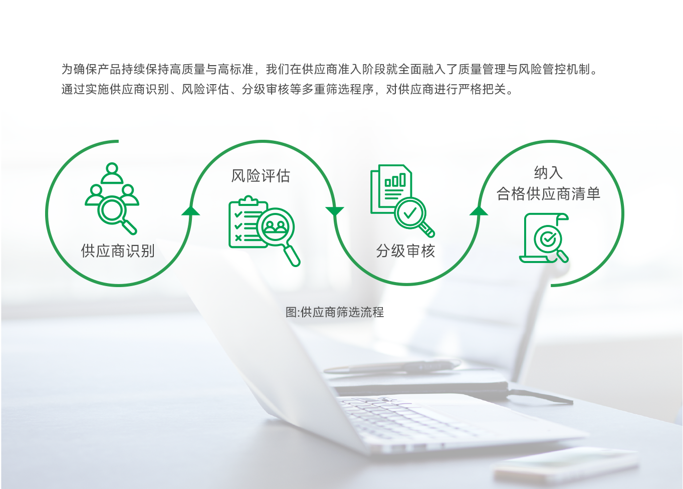 我们坚持“阳光、透明、质量为先”的采购原则,持续健全供应链体系建设,力求构建互惠互利、共赢发展的价值链生态,推动负责任的价值链体系建设,助力行业生态更可持续发展。