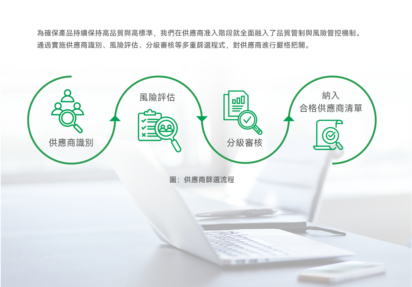 我們堅持“陽光、透明、品質為先”的採購原則,持續健全供應鏈體系建設,力求構建互惠互利、共贏發展的價值鏈生態,推動負責任的價值鏈體系建設,助力行業生態更可持續發展。
